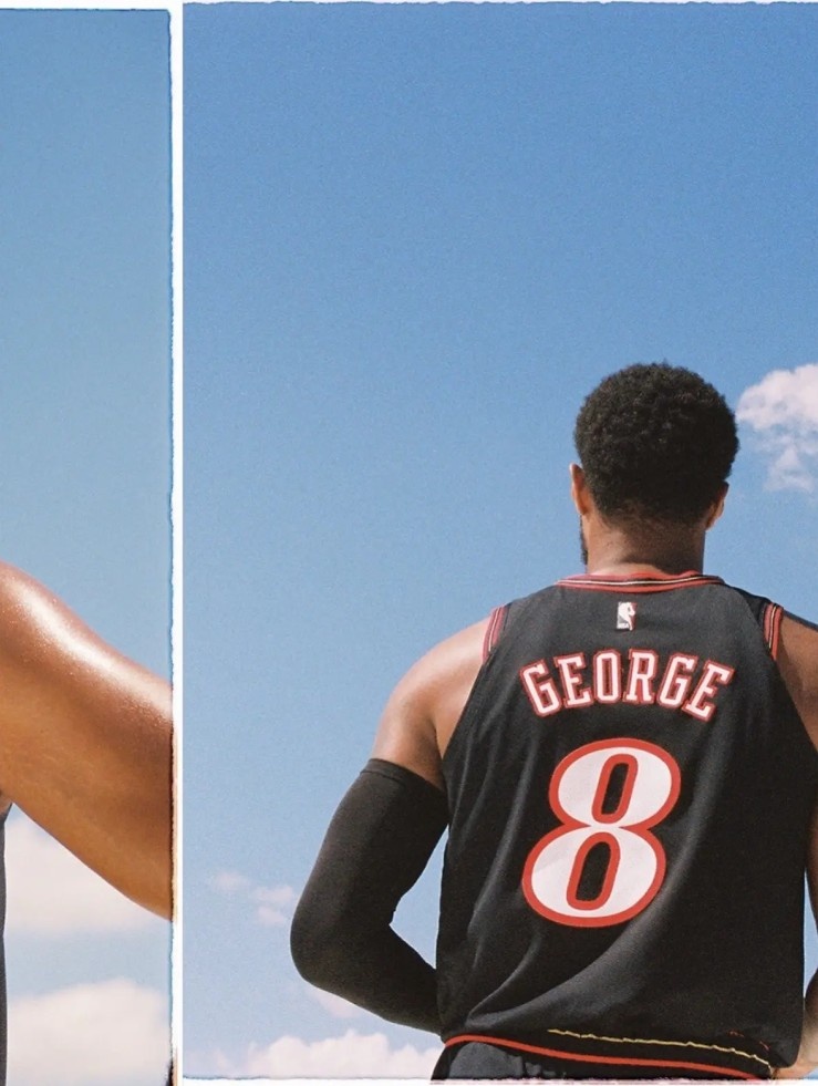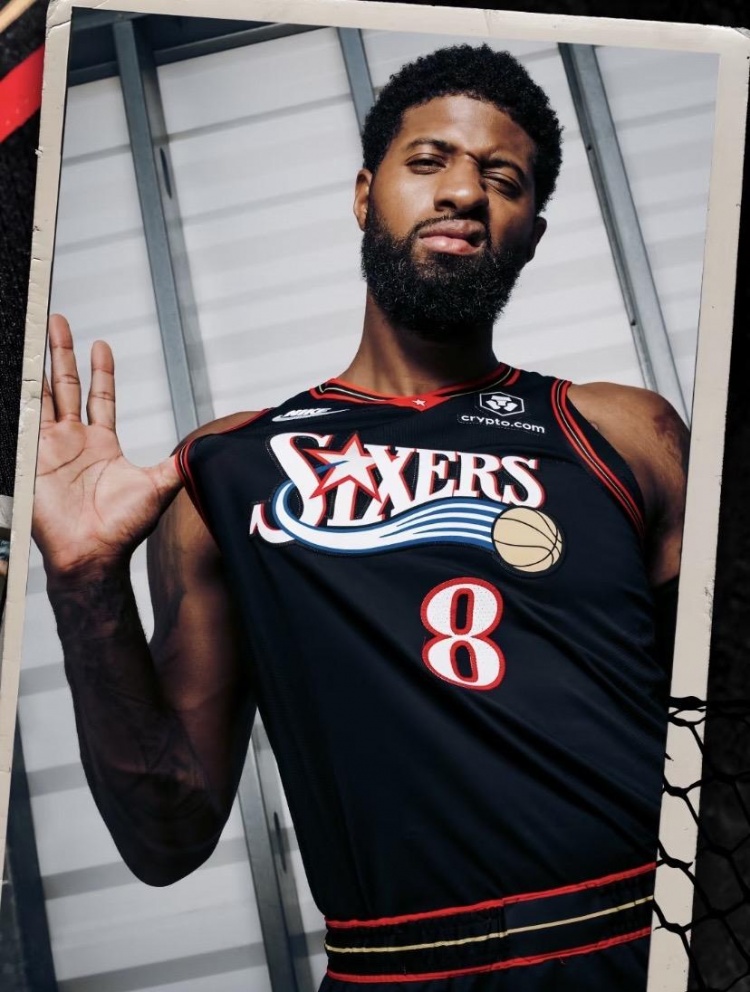 George đã đăng những bức ảnh của mình mặc một chiếc áo 76ers cổ điển và logo cổ điển của 76ers. Chú thích có nội dung: "Cảnh báo ⚠heroes trở lại."