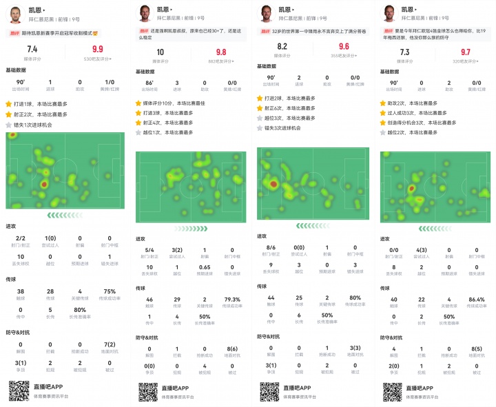 Trong bốn trò chơi đầu tiên của Bayern, Kane đã bắt đầu tất cả chúng, đóng góp 6 bàn thắng và 2 hỗ trợ. Từ bản đồ khu vực nóng của người chơi về hoạt động, Kane đã bao quát gần như toàn bộ trò chơi và thậm chí trở lại khu vực hình phạt của chính mình.